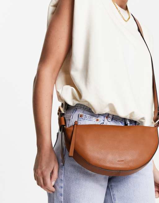 AllSaints – Brązowa skórzana torebka crossbody w kształcie półksiężyca