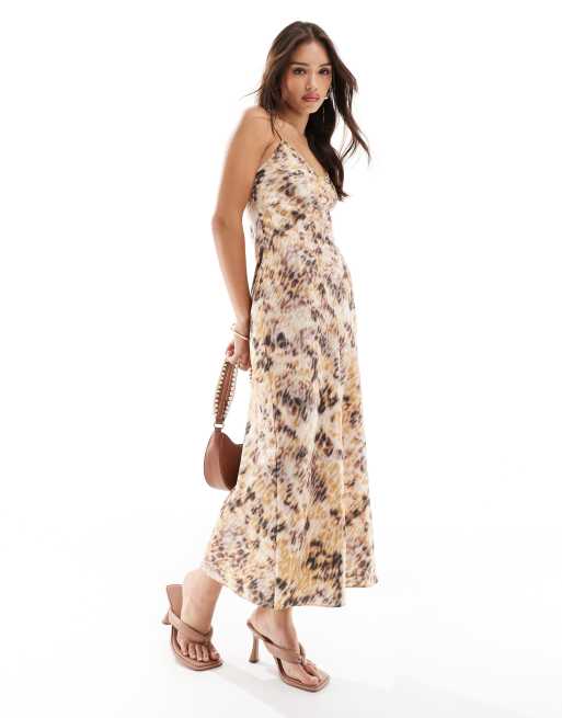 AllSaints – Bryony Carmina – Satynowa sukienka midi na ramiączkach w sezamowo-beżowym kolorze