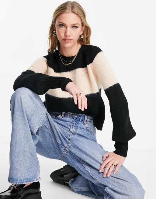 AllSaints – Czarno-różowy dzianinowy sweter w paski