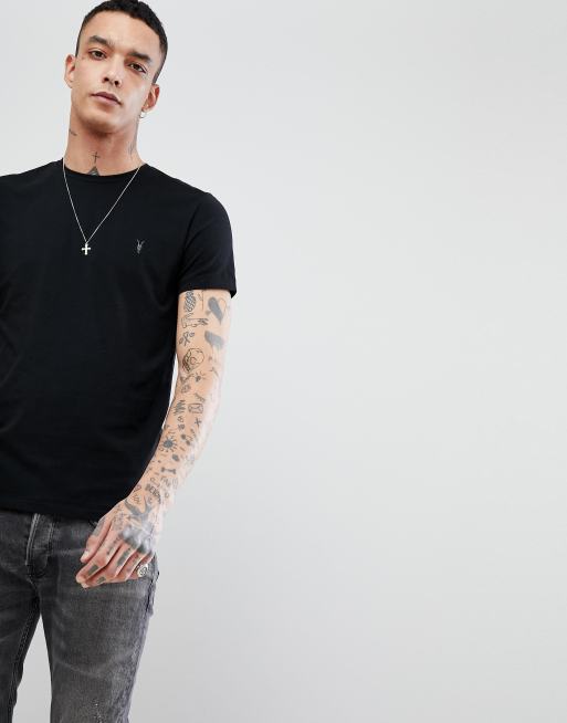 AllSaints – Czarny T-shirt z okrągłym dekoltem i logo