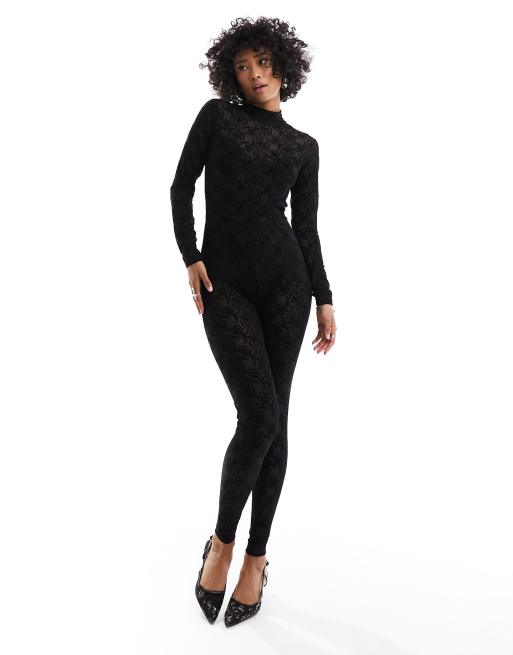 AllSaints – Dopasowany czarny kombinezon z zabudowanym dekoltem i długim rękawem