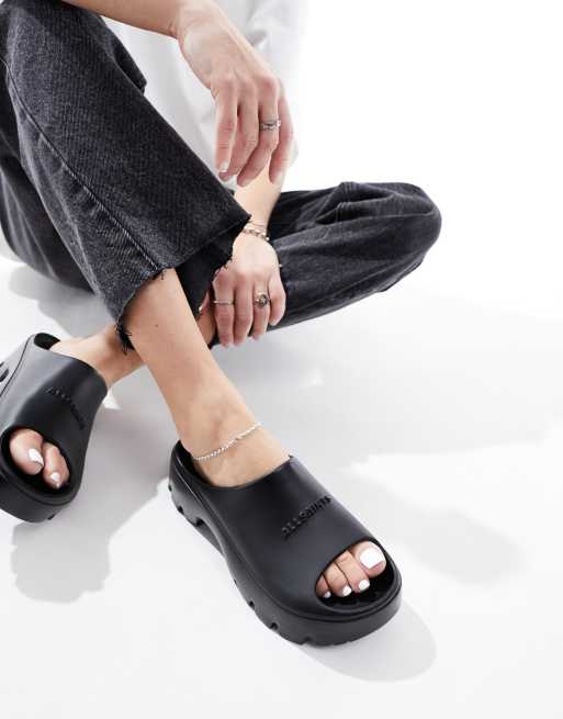 AllSaints – Eclipse – Czarne klapki na płaskiej platformie