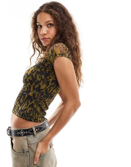 AllSaints – Ellie – Siateczkowy T-shirt w panterkę