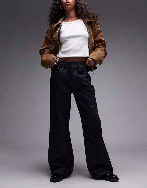 AllSaints – Ember – Połyskujące jeansy dzwony w kolorze indygo