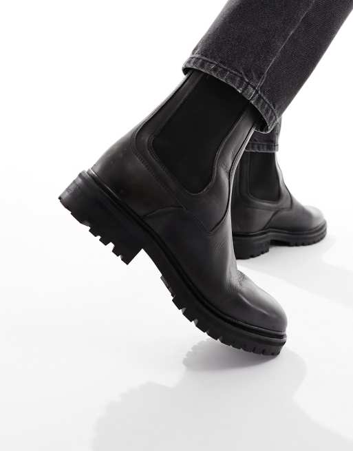 AllSaints – Melos – Ciemnobrązowe skórzane sztyblety