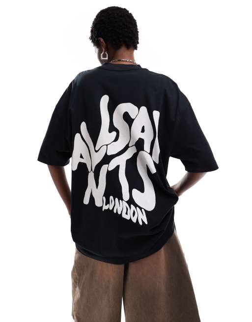 AllSaints – Orlando – Czarny T-shirt z nadrukiem na plecach