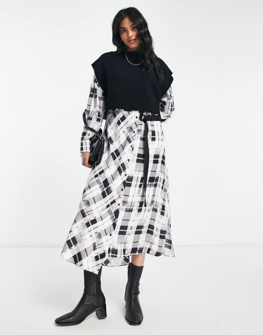 AllSaints – Penny – Kolorowa koszulowa sukienka midi 2 w 1