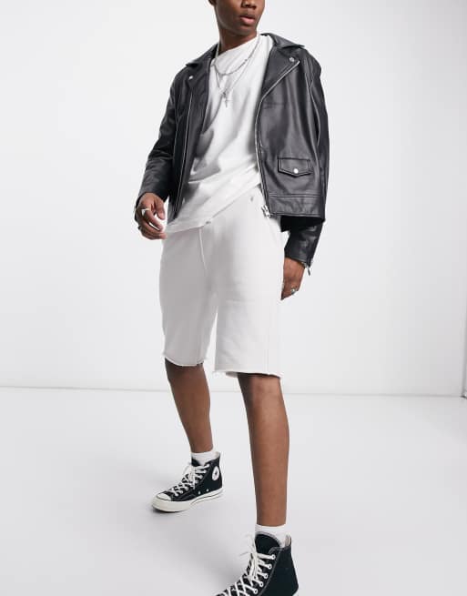 AllSaints – Raven – Ciemnoszare szorty z logo z czaszką barana