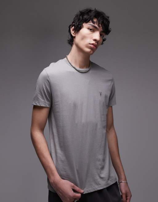 AllSaints – Tonic – Szary T-shirt z okrągłym dekoltem i krótkim rękawem