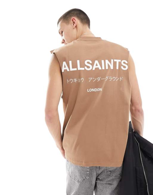 AllSaints – Underground – Brązowy podkoszulek oversize – tylko w ASOS