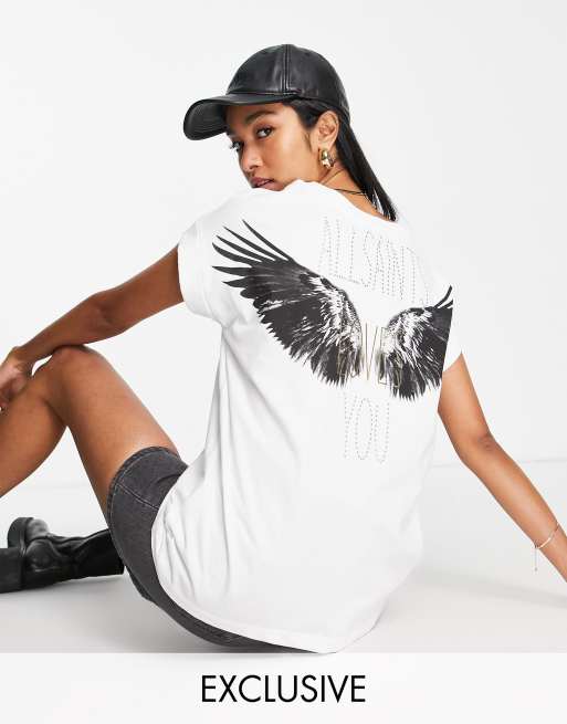 AllSaints x ASOS Exclusive – Imogen – Biały T-shirt z napisem „Loves You" na tle skrzydeł