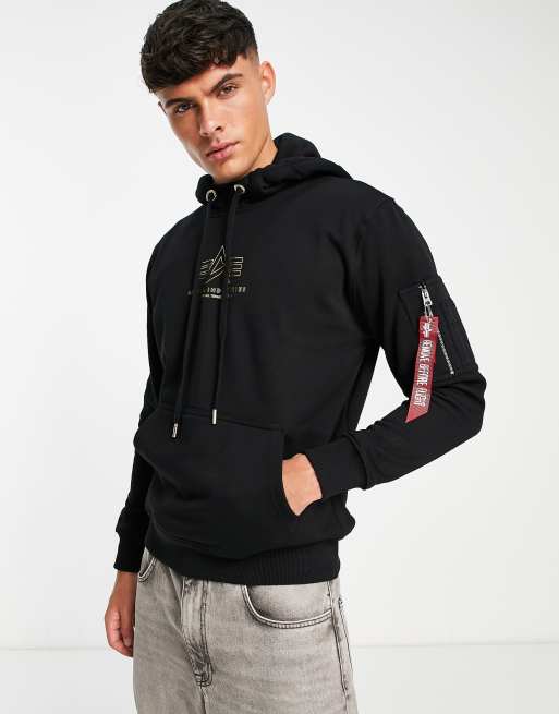 Alpha Industries – Czarna bluza z kapturem i foliowanym nadrukiem z logo na środku