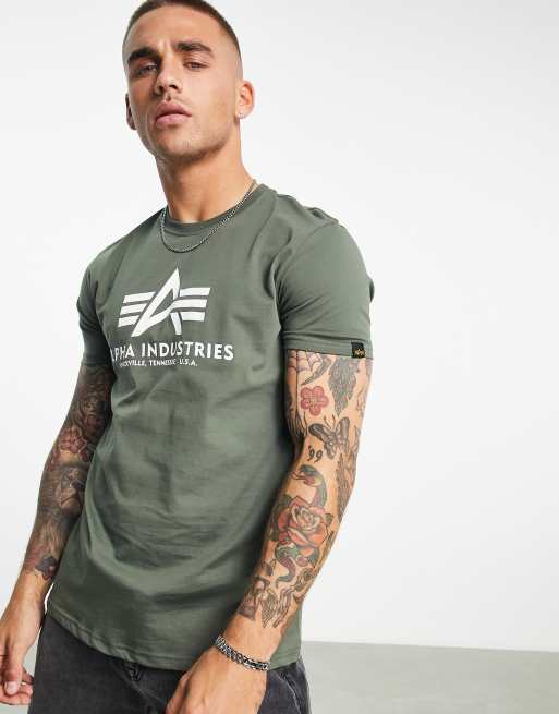 Alpha Industries – Oliwkowozielony T-shirt z logo z przodu