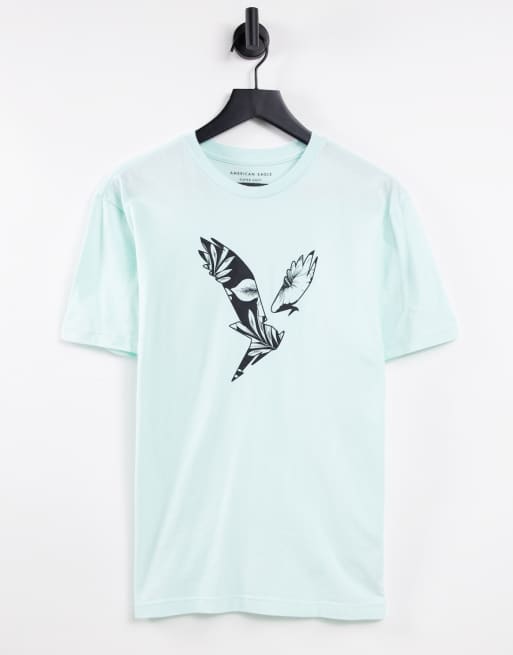 American Eagle – Miętowozielony T-shirt z logo w ramce na dekolcie