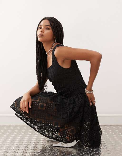 Amy Lynn – Czarna szydełkowa sukienka mini typu skater