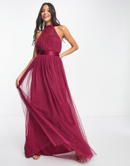Anaya With Love Bridesmaid – Czerwonośliwkowa sukienka z dekoltem halter – RED