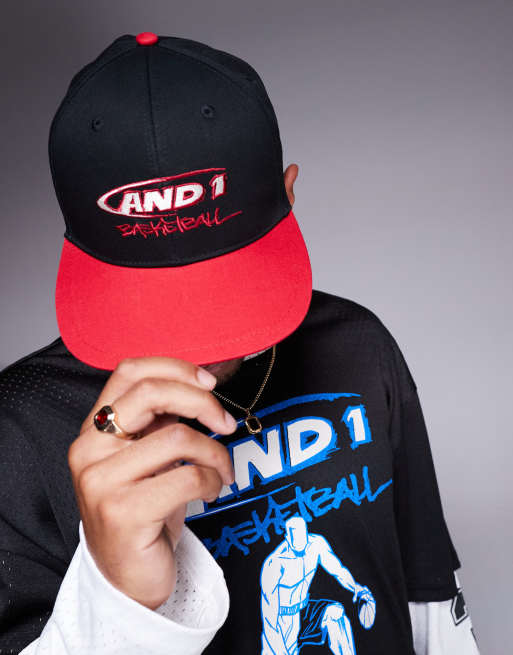 AND1 – Czarno-czerwona sportowa czapka z kontrastowym daszkiem z logo