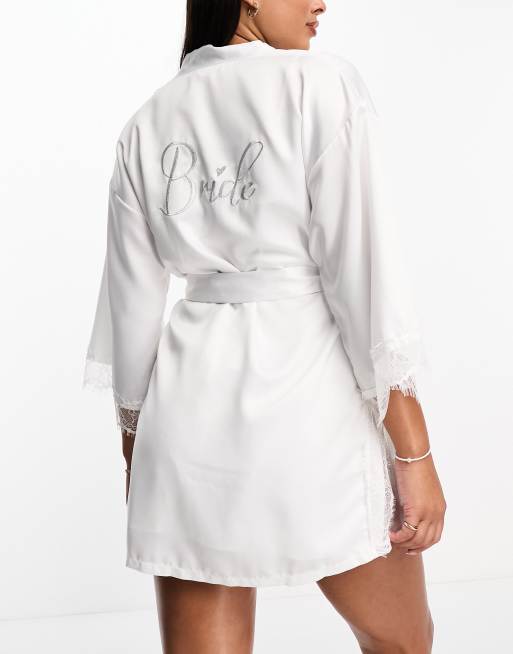 Ann Summers – Satynowy szlafrok z haftem „Bride“ i koronkowym wykończeniem w kolorze kości słoniowej