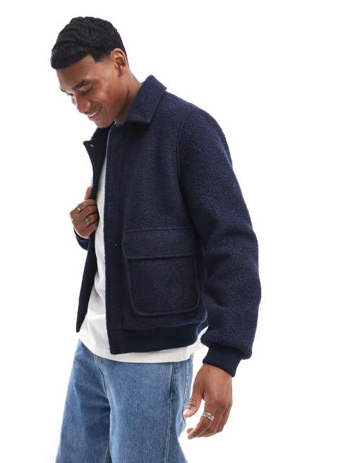 Another Influence – Granatowa fakturowana kurtka bomberka z dzianiny boucle