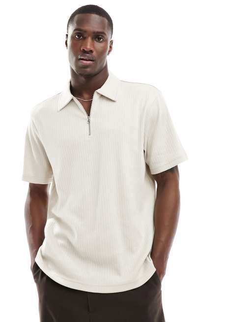 Another Influence – Jasnobeżowa koszulka polo z teksturowanego dżerseju z suwakiem pod szyją