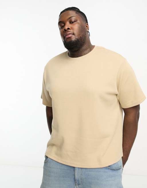 Another Influence Plus – Piaskowy gruby prążkowany T-shirt o luźnym kroju