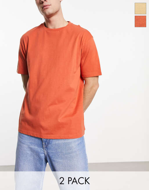 Another Influence – Zestaw 2 T-shirtów o pudełkowym kroju w kolorach ciemnożółtym i pomarańczowym