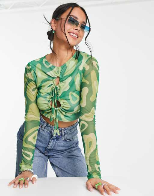 Another Reason – Zielony krótki top z siateczki w abstrakcyjny wzór z wycięciem