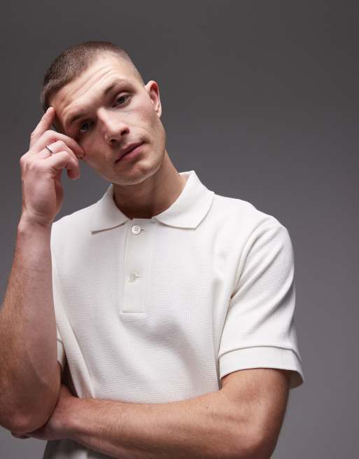 ARKET – Biała koszulka polo z krótkimi rękawami z fakturowanego dżerseju
