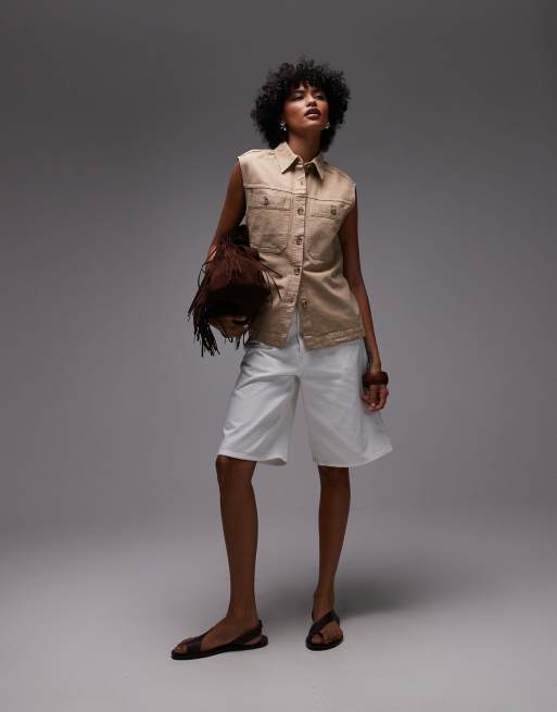 ARKET – Białe luźne szorty z diagonalu z pięcioma kieszeniami i średnim stanem