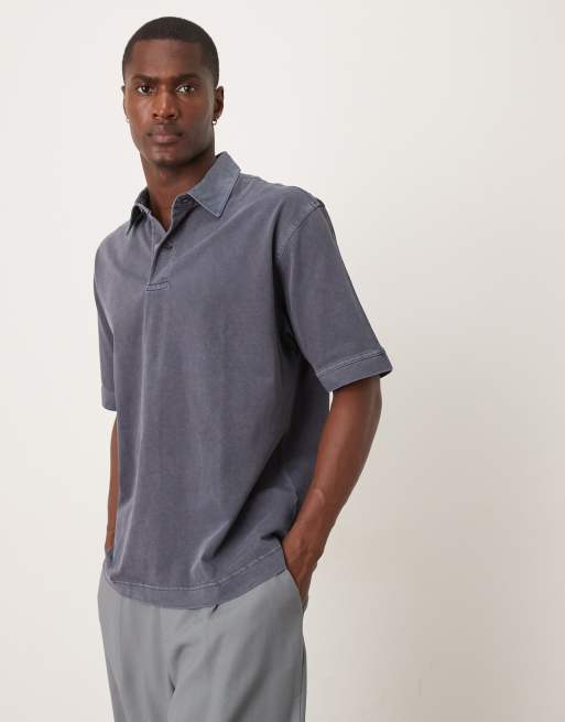 ARKET – Ciemnoniebieska dżersejowa gruba koszulka polo z krótkimi rękawami