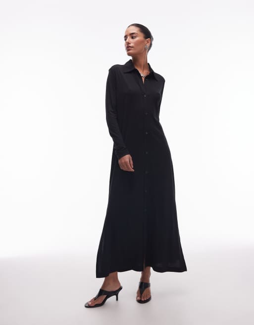 ARKET – Czarna sukienka koszulowa maxi z dżerseju