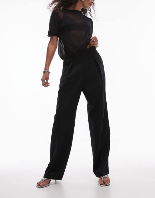 ARKET – Czarne eleganckie spodnie z prostymi nogawkami z mieszanki wełny i stretchem