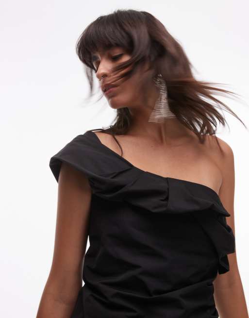ARKET – Czarny gorsetowy top na jedno ramię ze skręconym ramiączkiem