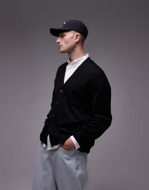 Arket – Czarny kardigan z wełny merynosa z dekoltem w szpic i guzikami z przodu