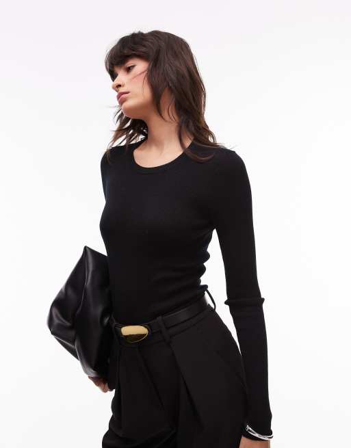ARKET – Czarny prążkowany top dzianinowy z wełny merynosów