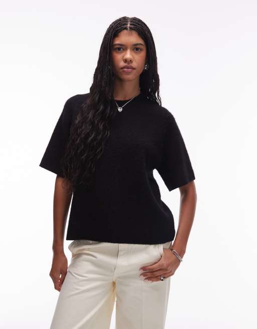 ARKET – Czarny sweter z krótkimi rękawami z domieszką wełny i wełny alpaki