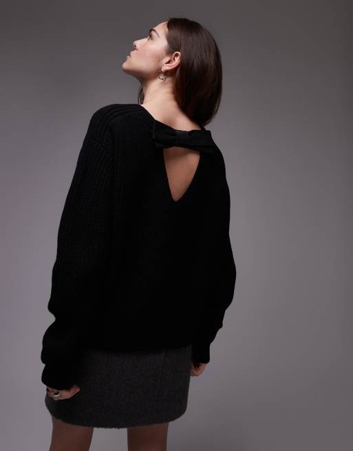 ARKET – Czarny sweter z prążkowanej dzianiny z głębokim wycięciem w szpic na plecach