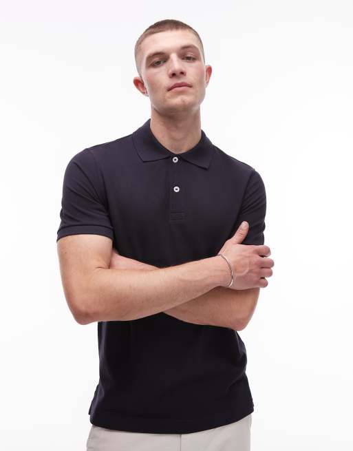 ARKET – Granatowoniebieska dżersejowa koszulka polo z piki z krótkim rękawem