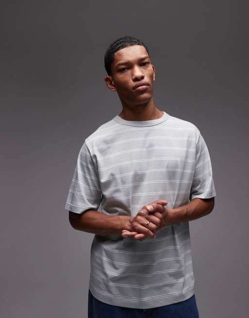 ARKET – Gruby dżersejowy T-shirt oversize w szaro-białe paski