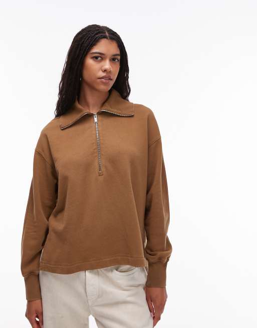 ARKET – Jasnobrązowy bawełniany sweter z zapięciem na zamek pod szyją
