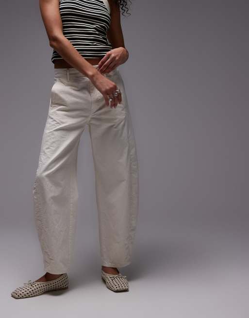 ARKET – Kremowe spodnie z baryłkowatymi nogawkami i wstawkami, z materiału z dodatkiem lnu