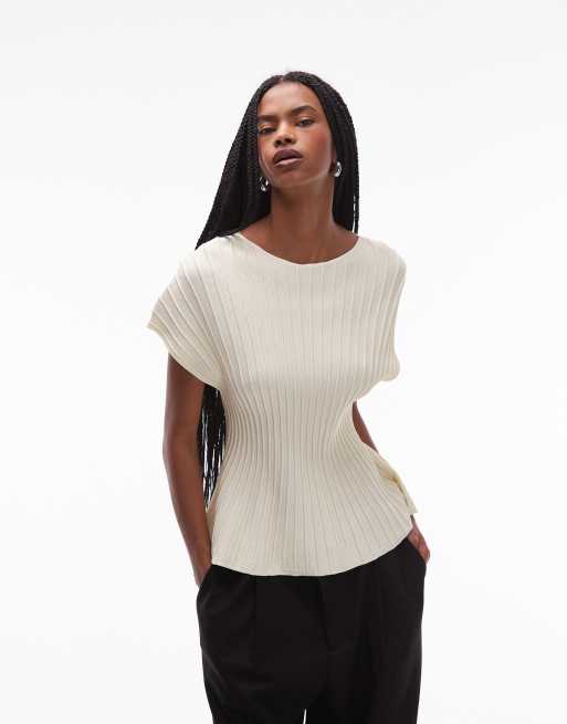 ARKET – Prążkowany top ze zwężaną talią i baskinką w kolorze złamanej bieli