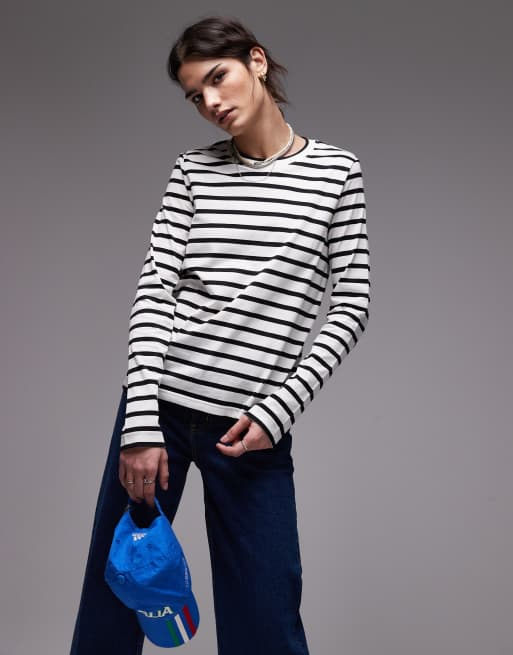 ARKET – T-shirt z długimi rękawami w paski w kolorze złamanej bieli i czarnym