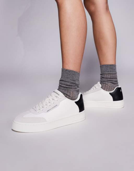 Armani Exchange – Buty sportowe w kolorze złamanej bieli i czarnym z logo