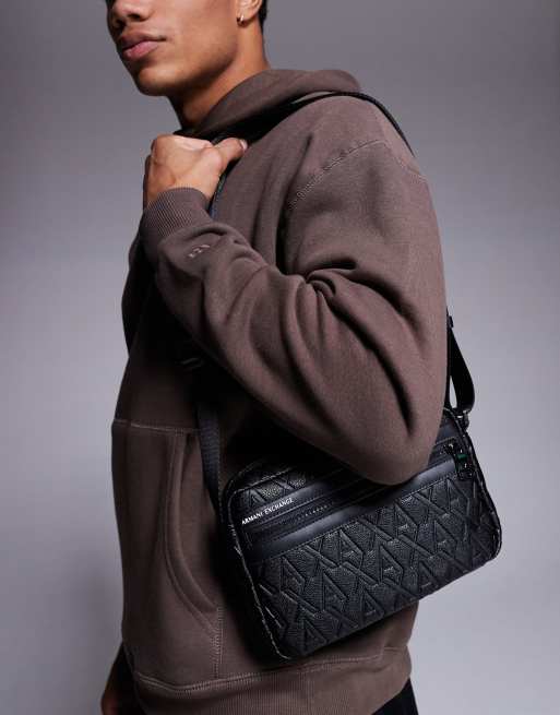 Armani Exchange – Czarna skórzana torebka crossbody we wzór z logo na całości