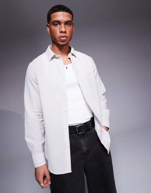Armani Exchange – Koszula w biało-beżowe paski z logo