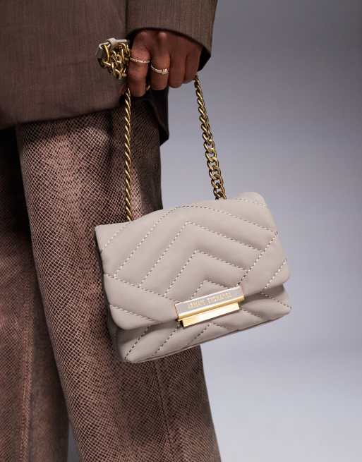 Armani Exchange – Szarobeżowa mała torebka crossbody ze złotymi detalami