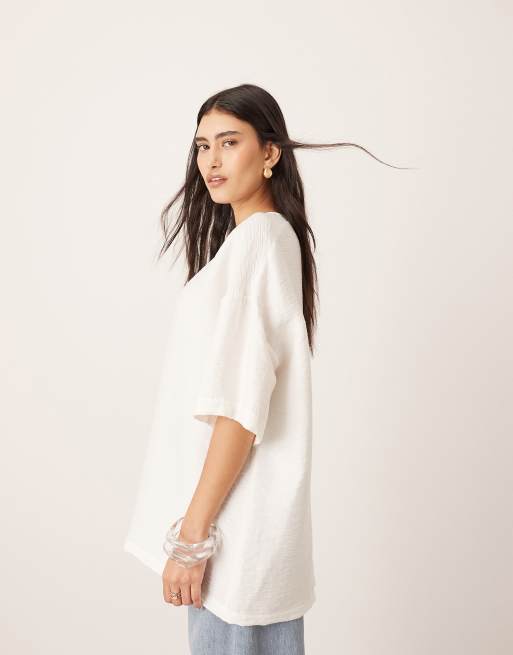 ARRANGE – Biały fakturowany T-shirt o pudełkowym kroju oversize z tkaniny