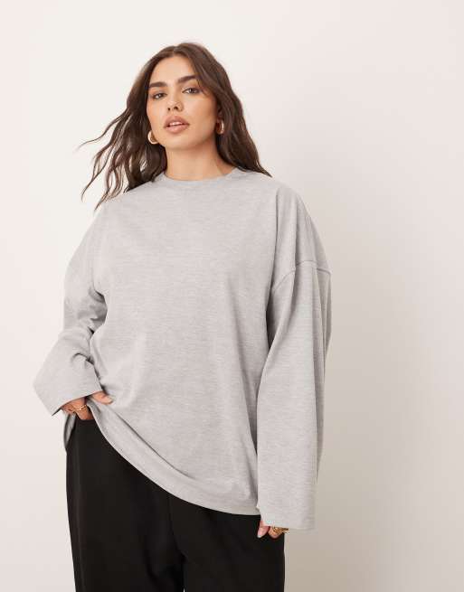 ARRANGE Curve – Bawełniany T-shirt oversize z długim rękawem w szarym melanżowym kolorze