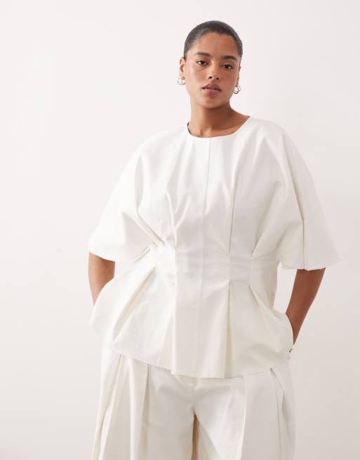 ARRANGE Curve – Biały taliowany T-shirt z zakładkami, część zestawu